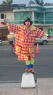 Віддають перевагу яскравим береткам, штанам і штанам з кумедними підтяжками, смугастим гетрам та білим рукавичкам. Для відвідування занять комфортніше одягати яскравий, об’ємний одяг.