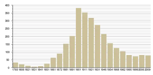 Динаміка населення (Base de données Cassini[3] і Insee[4] ):