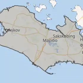 | острів Лолланн на карті Данії | ||||