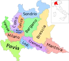| Провінції | Бергамо Брешія Комо Кремона Лекко Лоді Мантуя Мілан Монца і Бріанца Павія Сондріо Варезе | ||||