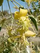 Квіти можуть рости поодинці або в кластерах. Є чотири від жовтого до жовто-апельсинового забарвлення чашолистки, яких часто помилково приймають за пелюстки. Чашолистки від яйцювато-ланцетних до еліптичних і досягають ширини 2–3 см, та довжини 6–9 см. Сім'янка вузько яйцеподібна, довгаста або вузько зворотнояйцеподібна, 3–3.5 × 1.2–2 мм.