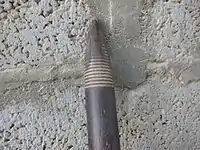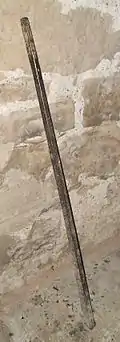 - Лом з кульовою голівкою важить 5 кг, має довжину 1 м, діаметр 50 мм. Призначений для збиття тиньку, сколювання льоду з кришок колодязів та гідрантів.