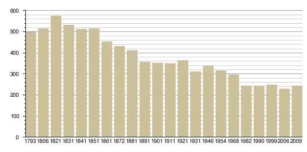 Динаміка населення (base Cassini de l'EHESS pour les nombres retenus jusque 1962[3], base Insee à partir de 1968 (population sans doubles comptes puis population municipale à partir de 2006)[4] · [5] ):