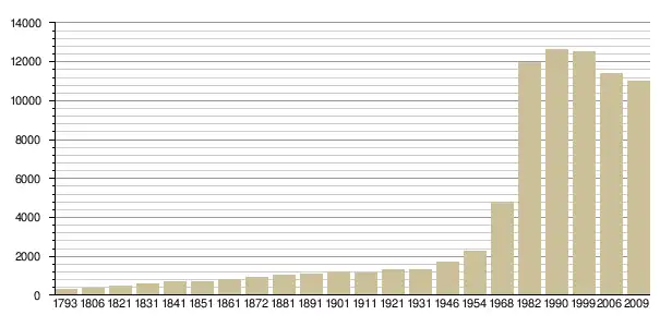 Динаміка населення (base Cassini de l'EHESS pour les nombres retenus jusque 1962[3], base Insee à partir de 1968 (population sans doubles comptes puis population municipale à partir de 2006)[4] · [5] ):