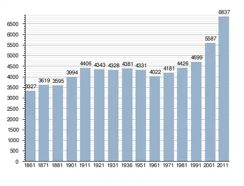 Станом на 31 грудня 2014 року в муніципалітеті офіційно проживало 507 іноземців з 45 країн, серед них 198 громадян країн Євросоюзу та 13 громадян України.[4]