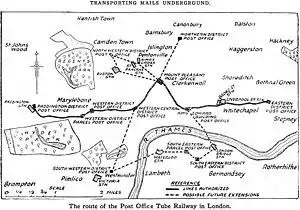 Тоді лондонські інженери поштової служби, ознайомившись з підземними вантажними залізницями в Чикаго і Берліні, вирішили побудувати аналогічну і у себе.
