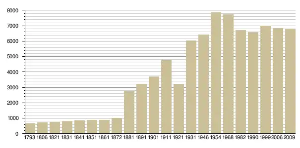 Динаміка населення (base Cassini de l'EHESS pour les nombres retenus jusque 1962[3], base Insee à partir de 1968 (population sans doubles comptes puis population municipale à partir de 2006)[4] · [5] ):