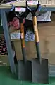 - Викопувальна садова лопата — з прямокутним полотном. Держак прикріплено під кутом 10°.
