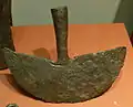 - Металургійна лопата має незвичайну форму полотна, схожу з профілем дзбана або вази. Держак прикріплено під кутом 38°[15][14]