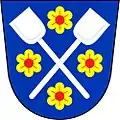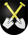 Лопата як геральдичний символ, активно стала використовуватися у XIX ст. на гербах міст промислових країн Європи. На таких гербах лопата показувала, що населення промишляє земляними роботами, добуває корисні копалини або на те, що населений пункт стоїть поруч штучної земляної споруди (каналу, кар'єру, земляного насипу, греблі). Також зображення лопати присутнє на гербах багатьох країн, де основна частка господарства відводиться рільництву (Панама, Ліберія)[18].