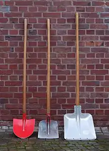 - Лопата для прибирання снігу — за формою та конструкцією схожа з совковою, але має більшу площу. Загнуті краї полегшують прибирання снігу. Для зменшення ваги полотно лопати робиться з пластику або алюмінію.
