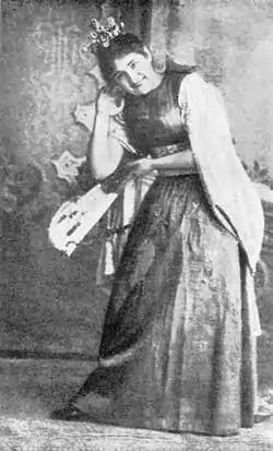 | До свого чистого і сильного сопрано, що напрочуд мило звучить у високих позиціях, артистка має добру техніку і виразну дикцію. Але що особливо подобається, так це її гра: вистудійована в кожній подробиці, вся повна руху і життя. Газета «Буковина» від 23 квітня 1908 р.[6]. |