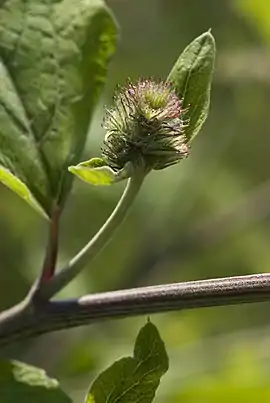 Дворічна трав'яниста рослина 10–250 см заввишки. Корінь сильний. Стебло гіллясте, грубе, коротковолосе. Листки чергуються, черешкові. Листова пластина широко яйцювата, основа серцеподібна, дрібнозубчаста, нижня поверхня біло-сірувато-пухнаста. Кошики великі, 3–4 см в діаметром, розташовані в китицеподібному суцвітті; верхні — здебільшого скупчені у вигляді клубочків; нижні — сидять поодиноко на дуже коротких ніжках. Листочки обгортки майже голі або слабо-павутинисті; внутрішні — рівні квіткам або трохи довші від них. Віночок пурпурово-червоний. Сім'янки 6–8 мм довжиною, оберненояйцюваті, слабо поперечно-зморшкуваті; чубчик 2.5–3 мм довжиною[2][3].