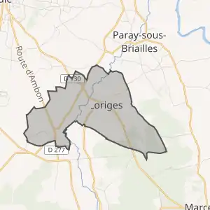 - Розташування муніципалітету Лориж на мапі Франції та сусідні муніципалітети