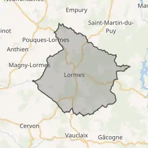 - Розташування муніципалітету Лорм на мапі Франції та сусідні муніципалітети