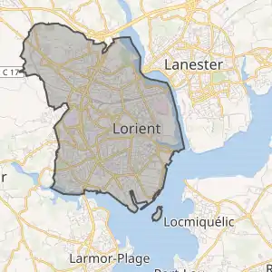 - Розташування муніципалітету Лор'ян на мапі Франції та сусідні муніципалітети
