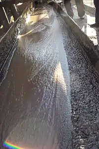 Лото́к, лоті́к[1] (рос. лоток, англ. trough, flume, channel, chute; нім. Förderrinne f, Rutsche f, Gerinne n, Mulde f, Trog m, Schurre f) — пристрій незамкненого поперечного перетину для безнапірного руху води або гідросуміші. Виробляється з дерева, металу, залізобетону й інших матеріалів. Поперечні перетини лотків можуть бути прямокутними, трапецієподібними, трикутними або криволінійними. Лоток складається з окремих ланок або має суцільну конструкцію. Укладається на земній поверхні, у виїмці і на естакадах. Застосовується для гідротранспортування гірських порід, лісоматеріалів (лотоки для спуску лісу), для пропуску води, при намиванні земляних споруд та гідровідвалів, у збагаченні корисних копалин тощо.