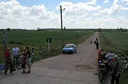 Залізничний переїзд поблизу зупинного пункту. Вид з поїзда.