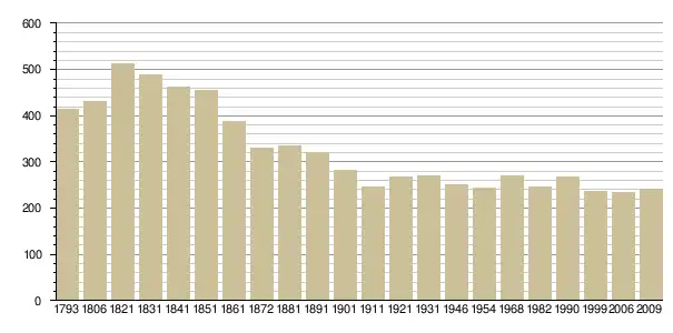 Динаміка населення (base Cassini de l'EHESS pour les nombres retenus jusque 1962[3], base Insee à partir de 1968 (population sans doubles comptes puis population municipale à partir de 2006)[4] · [5] ):