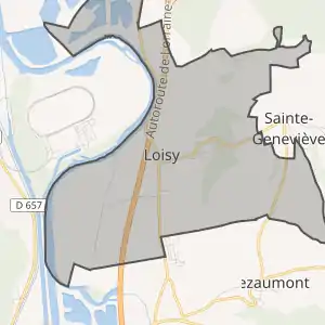 - Розташування муніципалітету Луазі на мапі Франції та сусідні муніципалітети