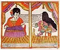 Чоловік лапті плете, а дружина - пряде, лубок початку XVIII ст.