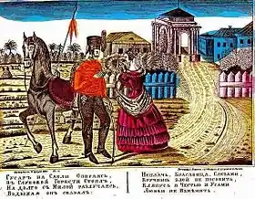 Консервативна народна свідомість протистояла негуманно проведеним культурним реформам, що запровадив цар Петро І та його оточення. Лубок початку XVIII століття вперше запозичив стилістику доби у вигляді елементів бароко та моди на новий європейський одяг. Ще раз це відбудеться в добу ампіру, коли Російська імперія воюватиме з військами Наполеона у 1812–1814 рр.