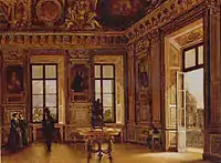 Створення королівської резиденції в Луврі розпочали у 1546 році (архітектор П'єр Леско). Квадратний двір палацу створили архітектори Жак Лемерсьє, а наприкінці 17 століття добудував Луї Лево. Лувр ставав конгломератом різностильових споруд від доби відродження до класицизму (східна Колонада Лувру, архітектор Клод Перро). Будівельні роботи припинилися за короля Луї XIV, що переніс королівську резиденцію в улюблений Версаль. Приміщення палацу використовують як майстерні і житло художників, крамнички ремісників, облаштували друкарню тощо. Порожніх приміщень було стільки, що в Луврі розмістилася Королівська Академія живопису і скульптури.
