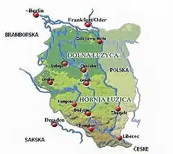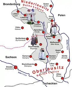 Найбільшими містами Лужиці є Будишин (нім. Бауцен) та Хосебус (нім. Коттбус).
