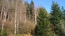 Високопродуктивне насадження смереки за участю бука, ялиці та явора. Вік 100 років. Схил південно-східний, 10 градусів.