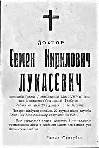 Євмен Кирилович Лукасевич (26 грудня 1871, м. Біла Чортківського округу Галичини — 20 грудня 1929, Варшава) — український дипломат, журналіст, лікар, видавець і громадський діяч. Міністр охорони здоров'я уряду УНР. Автор україномовного «Анатомічного словника». Батько Левка Лукасевича[1].