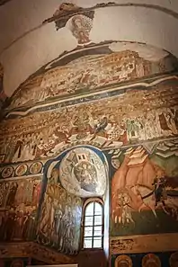 Внутрішні фрески почали створювати одразу ж, але закінчили тільки в 1523 році, а зовнішні були замовлені онукою Луки, Анною, в 1541 році. Церква була побудована з каміння, поблизу господарського двору. Має прямокутну форму та характерне подовження бокових стін на заході, які закінчуються аркою, яка мабуть служила дзвіницею. Цінність цієї архітектурної пам'ятки зростає завдяки внутрішньому розпису, здійсненому у 1503—1504 рр., а також зовнішньому розпису у виконанні майстра Драгосіна, сина попа Комана з міста Ясси, після османської навали 1538 року.[5] Хоча розпис у більшій мірі пошкоджений, можна помітити, що в розписі переважає зелений відтінок.