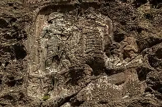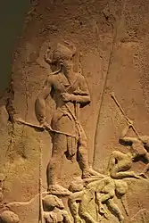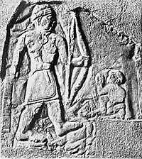 ![]() Стела, де вірогідно зображений цар луллубеїв — Анубаніні. Він стоїть перед богинею (можливо, Іштар), яка тримає двох полонених. XXIII-XXII ст. до н. е. | |