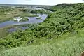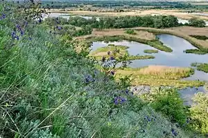 Вище в рельєфі заплави розташовані засолені луки, на яких зростають осока житня і пирій подовжений, а також рідкісний хвощ рябий (це — найпівденніше місце поширення цієї рослини в Україні). Тут він утворює суцільні чагарники, які вирізняються яскраво-зеленим кольором. Також трапляються чагарники реліктового виду — ефедра двоколоса.