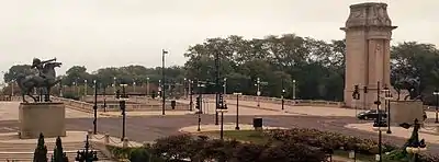 - Merevick, Tony (22 березня 2011). Warrior statues missing weapons. Timeout Chicago. Процитовано 26 вересня 2015.