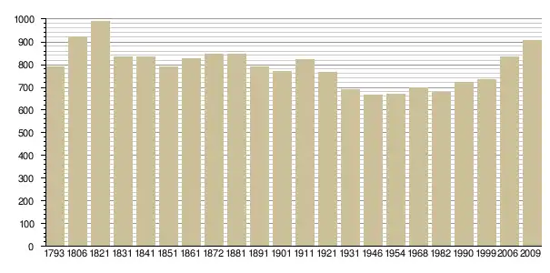 Динаміка населення (base Cassini de l'EHESS pour les nombres retenus jusque 1962[3], base Insee à partir de 1968 (population sans doubles comptes puis population municipale à partir de 2006)[4] · [5] ):