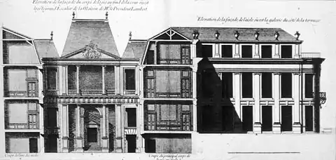 Фасад і розріз міського палацу (готелю) Ламбер в Парижі