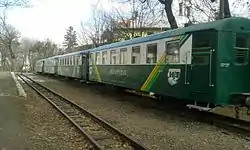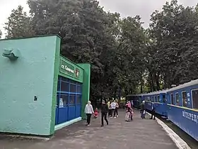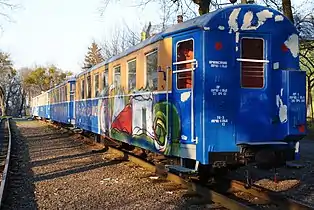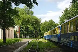 до 1976 року існувала третя станція — «Дитяче містечко». - Рухомий склад: тепловози ТУ2-087, ТУ3-039, 4 вагони Pafawag.
