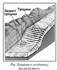- Покривні льодовики — льодовики, що мають товщину до 4 км, приховують нерівності рельєфу і займають великі площі.