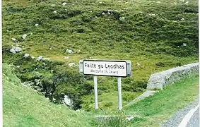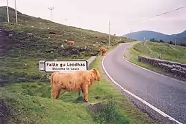 Придорожний знак на позначення кордону між Льюїсом та Гаррісом