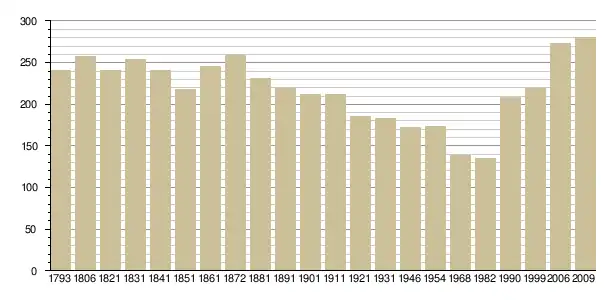 Динаміка населення (base Cassini de l'EHESS pour les nombres retenus jusque 1962[3], base Insee à partir de 1968 (population sans doubles comptes puis population municipale à partir de 2006)[4] · [5] ):