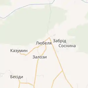 | Любеля (пол. Lubela, Lubella) — село, у Жовківському повіті, 18 км на пн. від пошти в Жовкві, 16 км на пн.-зах. від повітового суду в Великих Мостах. На пн.-зх. лежить Пристань, на пн. Бутини, на сх. Деревня, на пд.-сх. Кулява, на пд. Замочок і Добросин, на зах. Бесіди. Вздовж пн.-зах. кордону пливе р. Біла з пд.-зах. на пн.-сх. до Бутин, де впадає в р. Рата. Від правого берегу приймає вона на території села декілька малих потоків. Найвище (до 230 м) підноситься узгір'я Семчиха, яке розташоване посередині території. Сільська забудова розкидана на цілому просторі села і утворює такі частини села і групи будинків: Боровики, Бориси, Бутинці, Цюпка, Фігури, Казумин, Кобрини, Ковалиськи (Ковалевські), Марушка, Мельники, Слуки, Свистуни, Соснина, Забрід, Залози, Заполе. Власн. більша мала орної ріллі 135, лугів і городів 104, пасовищ 73, лісу 318 моргів; власн. менша орної ріллі 1278, лугів і городів 1253, пасовищ 399, лісу 17 моргів.