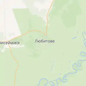 Село Любитове розміщене на відстані 2,5 км від правого берега річки Сейм, вище за течією на відстані 8 км розташоване село Заболотове, нижче за течією на відстані 1,5 км розташоване село Нове (Конотопський район). Річка в цьому місці звивиста, утворює лимани, стариці і заболочені озера (озеро Любитове).