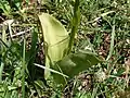 Трав'яниста рослина заввишки 30-60 см. Бульби завдовжки 2-4 см, завширшки 0,8-1,5 см, парні, яйцеподібні або овальні, на протилежному від стебла кінці поступово витончуються і переходять у корінці. Стебло пряме, міцне, гранчасте. Два великих, еліптичних, із заокругленими кінцями листки розміщені при основі стебла, вище розташовані 2-3 піхви з невеликими листковими пластинками. Прикореневі листки завдовжки 10-20 см, завширшки 3-8 см. Приквітки ланцетні, загострені, ті, що розташовані при основі суцвіття, значно довші за зав'язь.
