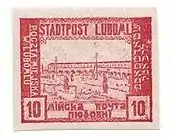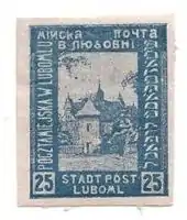 Згідно з постановою міської Ради Любомля та начальника 259 австрійської етапної пошти підполковника А.Штерната у вересні 1918 року у Празькому мистецько-видавничому підприємстві «Уніон» було замовлено серію марок для поштового вжитку цивільного населення Любомльської округи. Малюнки марок були зроблені з фотографій і виконав їх учень Празької мистецької школи Капрі (Капер). Всього було випущено п'ять марок різних кольорів з зображенням найцікавіших архітектурних споруд міста. Марки мали розмір 30х24 мм, або 24х30 мм. Папір був білий або сіро-білий, звичайний, гумований. Було два варіанти марок, з зубцями 11 1/2 і беззубцевий. Беззубцеві марки випускались в листах на тонкому папері. Друкована форма 11 знаків в листі (2х6,одне поле незадруковане). На друкарському аркуші відбито форму два рази по системі тет-беш. Розмір аркушів 180 на І 50 мм. Кожна 11-та марка в листі мала перевернутий номінал.