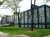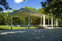 Керуючись принципом «Менше — значить більше» (Less is more), в американський період Міс розвиває концепцію «універсальної» будівлі — гранично простого формою скляного паралелепіпеда, що його поверхню розчленовано рівномірно повторюваними стійками.