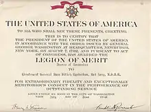 - Орден «Легіон Заслуг» ступеня командора, США (26.06.1944)