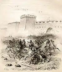 У 846 араби піднялися по Тибру до самого Рима і захопили його, зокрема розграбувавши собор Святого Петра. Король Людовик воював з ними, але зазнав поразки і ледве зумів врятуватися. У 850 Папа Лев IV вінчав Людовика імператорською короною. Князь Салерно Сіконульф з'явився до Людовика, присягнув йому на вірність і заплатив значну суму грошей. Заручившись союзом з ним, Людовик рушив проти арабів з усіма розташованими в Італії військами франків. Князь Беневенто видав йому арабів, що були в місті, і Людовик наказав стратити їх, але ця лють не зупинила ворогів, які чинили жахливі спустошення. Людовик марно брав в облогу Барі і незабаром відступив.
