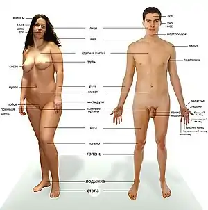 Людське тіло — фізична структура людини, людський організм. Тіло людини утворено клітинами різних типів, характерним чином організується в тканини, які формують органи, заповнюють простір між ними або покривають зовні. Тіло дорослої людини утворюють близько тридцяти трильйонів клітин. Клітини оточені міжклітинною речовиною, що забезпечує їх механічну підтримку і здійснює транспорт хімічних речовин. Людський організм росте і розвивається протягом усього життя. Вікові зміни людського організму в постнатальному періоді у перший місяць після народження пов'язані з переходом організму дитини від паразитарного типу існування у материнській утробі до фізичного самостійного, але фізіологічно залежного від опіки з боку дорослих, насамперед матері, функціонування.[1] Своєї якісної своєрідності людське тіло набуває у віці до одного року, коли відбувається становлення власних органічних систем та перших тілесно поведінкових форм самостійності, поява зорового та слухового зосередження, комплексу пожвавлення, акту хапання, формування систем первинної адаптації до нового навколишнього світу.[2]