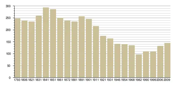 Динаміка населення (base Cassini de l'EHESS pour les nombres retenus jusque 1962[3], base Insee à partir de 1968 (population sans doubles comptes puis population municipale à partir de 2006)[4] · [5] ):