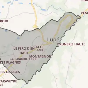 - Розташування муніципалітету Люпе на мапі Франції та сусідні муніципалітети